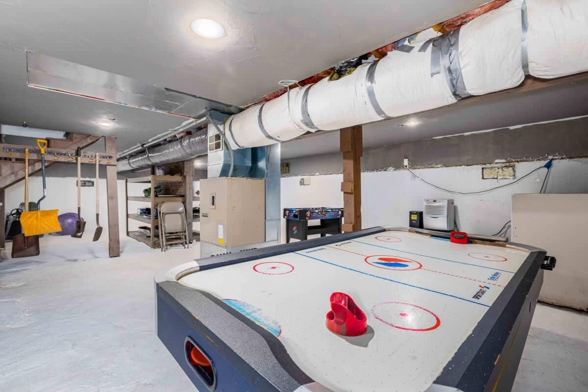 Not to be outdone, the basement is equipped with game room classics including foosball, air hockey and table tennis.