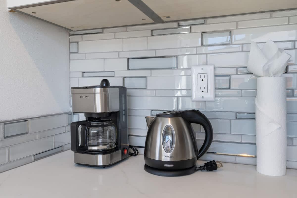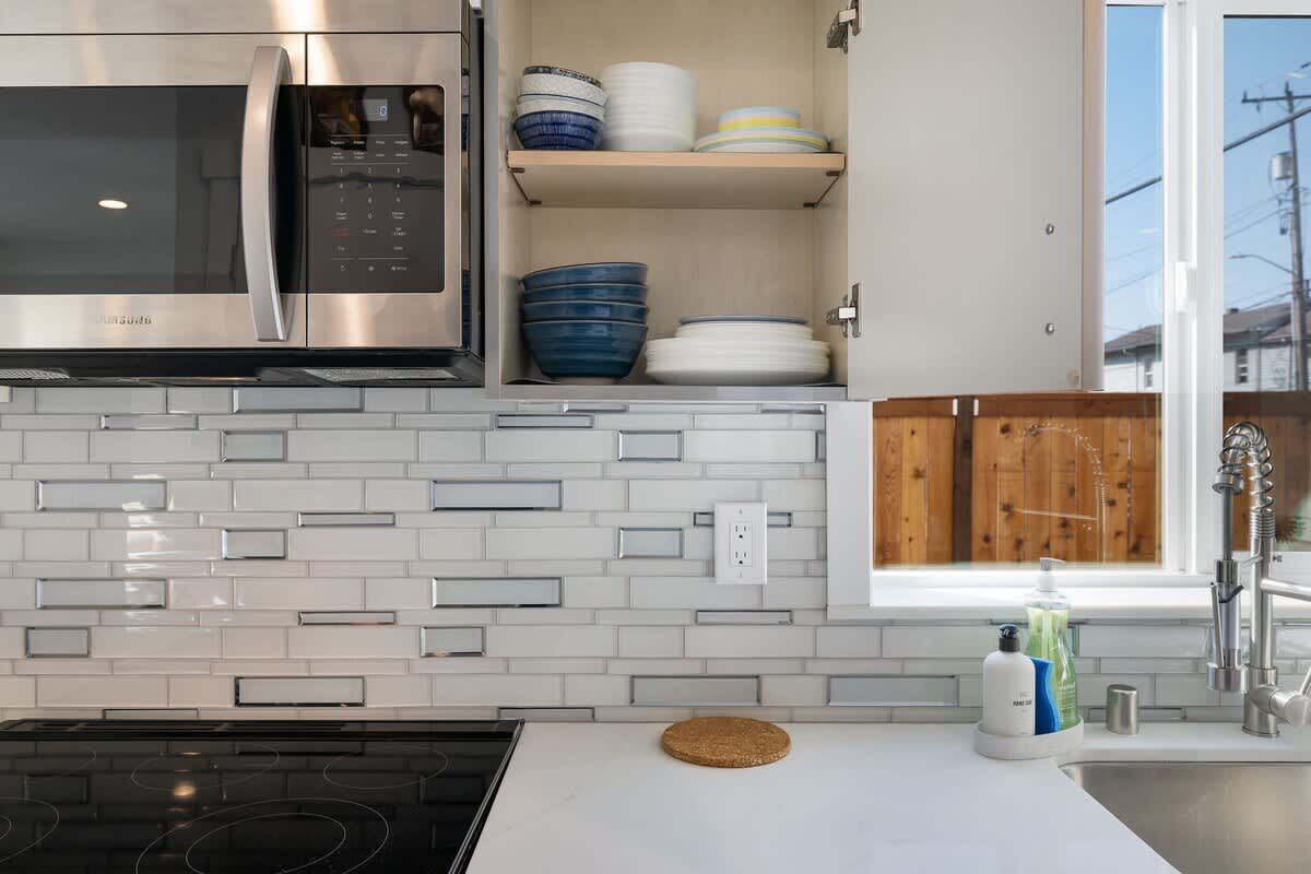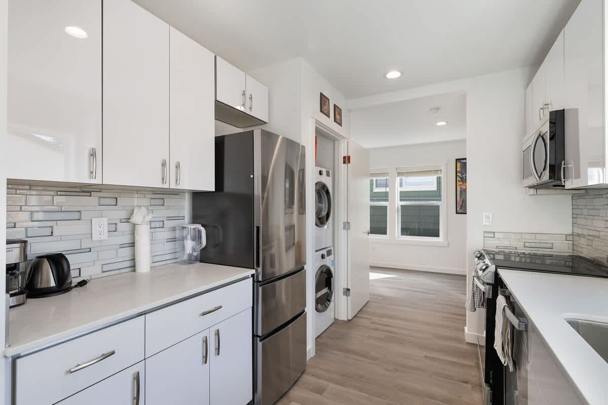 • Modern kitchen with stainless steel appliances + all cooking essentials