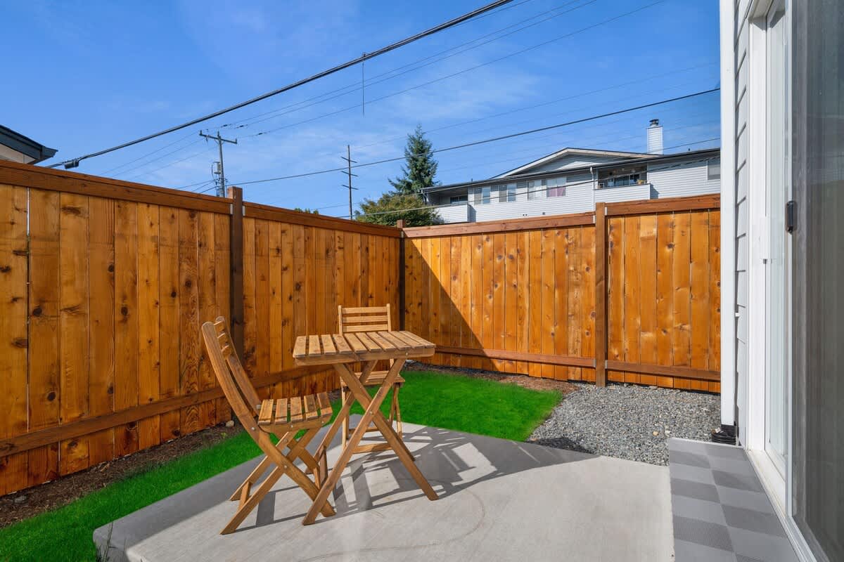 • Fenced backyard with patio seating