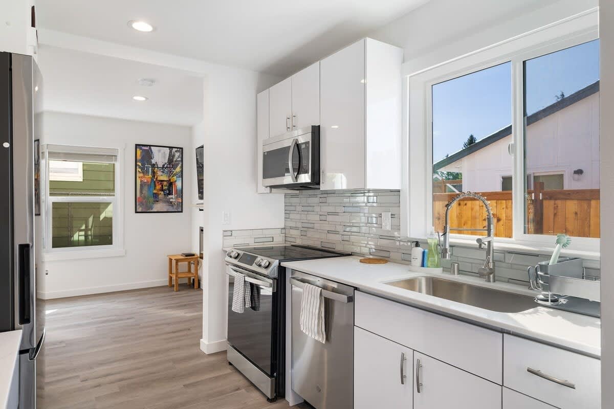 Newly built in 2023 and tucked into a quiet residential pocket, this modern Greenwood home pairs clean design with comfort-driven details. Whether you're in town for a long weekend or an extended stay, it’s your perfect launchpad for exploring Seattle.