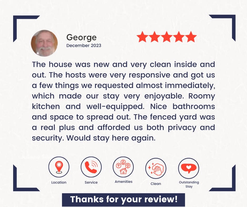 • We take cleanliness seriously—this home is professionally cleaned and inspected before every stay.